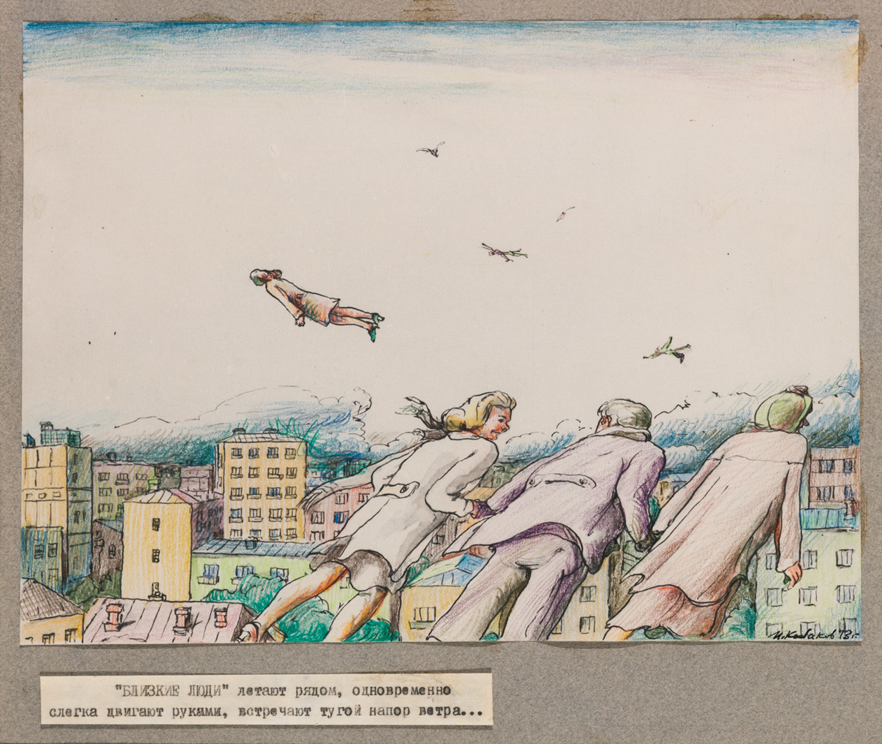 Пустое содержание хвалёного коллективизма советских людей, по идее – с высокими помыслами (вон, летают), а на деле – их общие ощущения: всего лишь ветер. Низшее из ощущений. Совки.