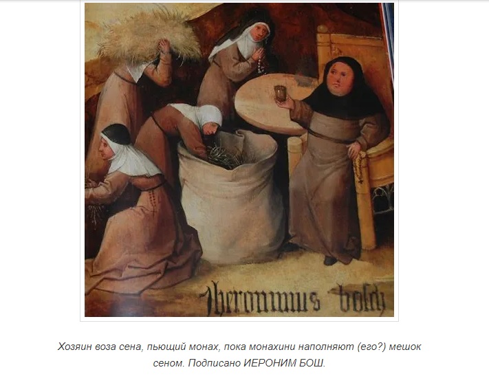 И теперь, я могу предвзято читать попавшуюся мне статью о Босхе – В. Косякова. К анализу “Воза сена” Иеронима Босха: “суета сует” в контексте поздней средневековой культуры XV-XVI вв. (https://www.academia.edu/37672146/%D0%A2%D1%80%D1%83%D0%B4%D1%8B_%D0%A0%D0%90%D0%A8_15_26_04_pdf?auto=download&email_work_card=download-paper ).
